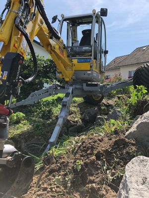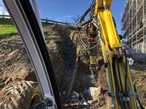 Leitungsbau mit 2.7to Menzi und schlagkräftigem Hydrohammer Fels zertrümmern